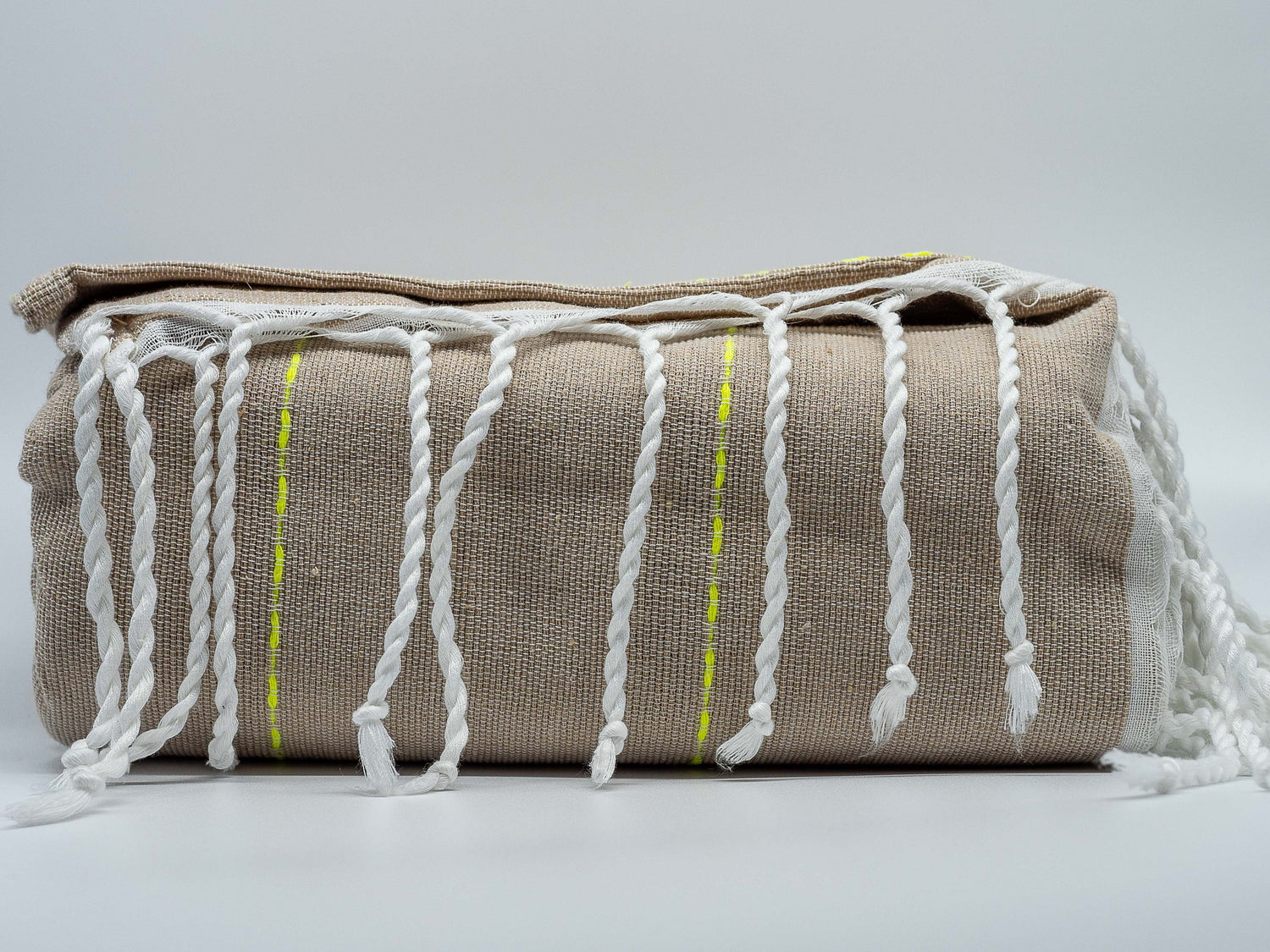 Todas nuestras mantas son hechas en Huatulco, Oaxaca, México por artesanos utilizando hilos de algodón siguiendo la técnica tradicional del telar de pedal.